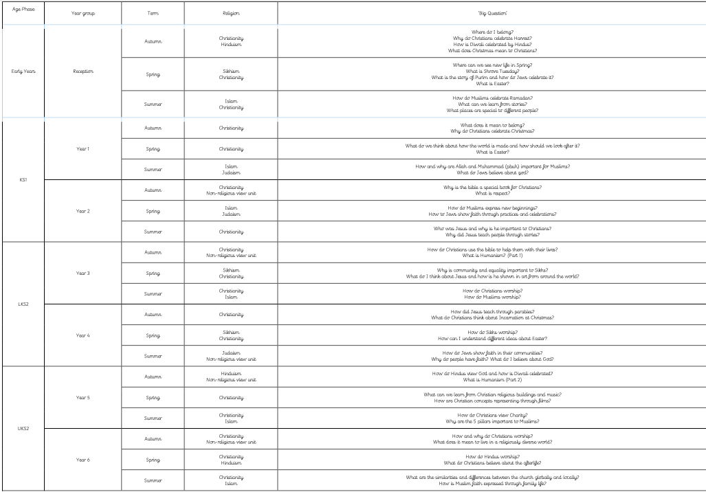 At Cuddington Primary School, our R.E. curriculum encourages children to explore and challenge ideas while developing tolerance and understanding of different beliefs. Through a knowledge-rich approach, discussions, visitors and visits to places of worship, pupils grow personally and gain insight into a wide range of religions.