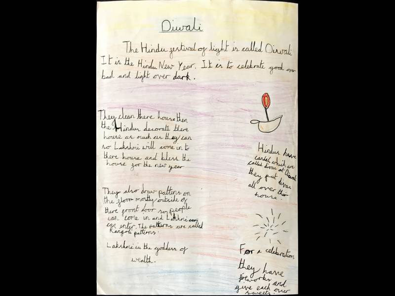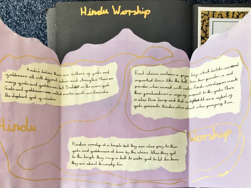 R.E at Cuddington is a discussion based subject where children are encouraged to think about their own beliefs and compare them to others' around them. This means that all children have the opportunity to join in and respond to lessons without barriers of reading or writing.